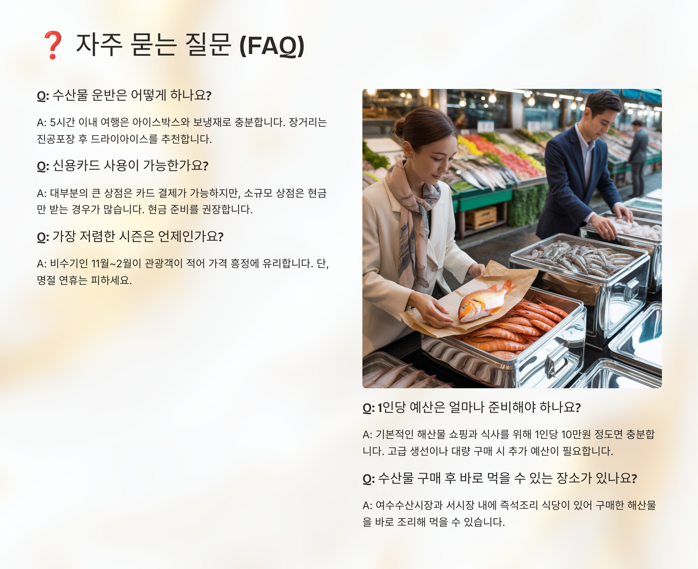 철저한 준비가 알뜰하고 즐거운 여수 수산물 여행을 만듭니다! 🌊