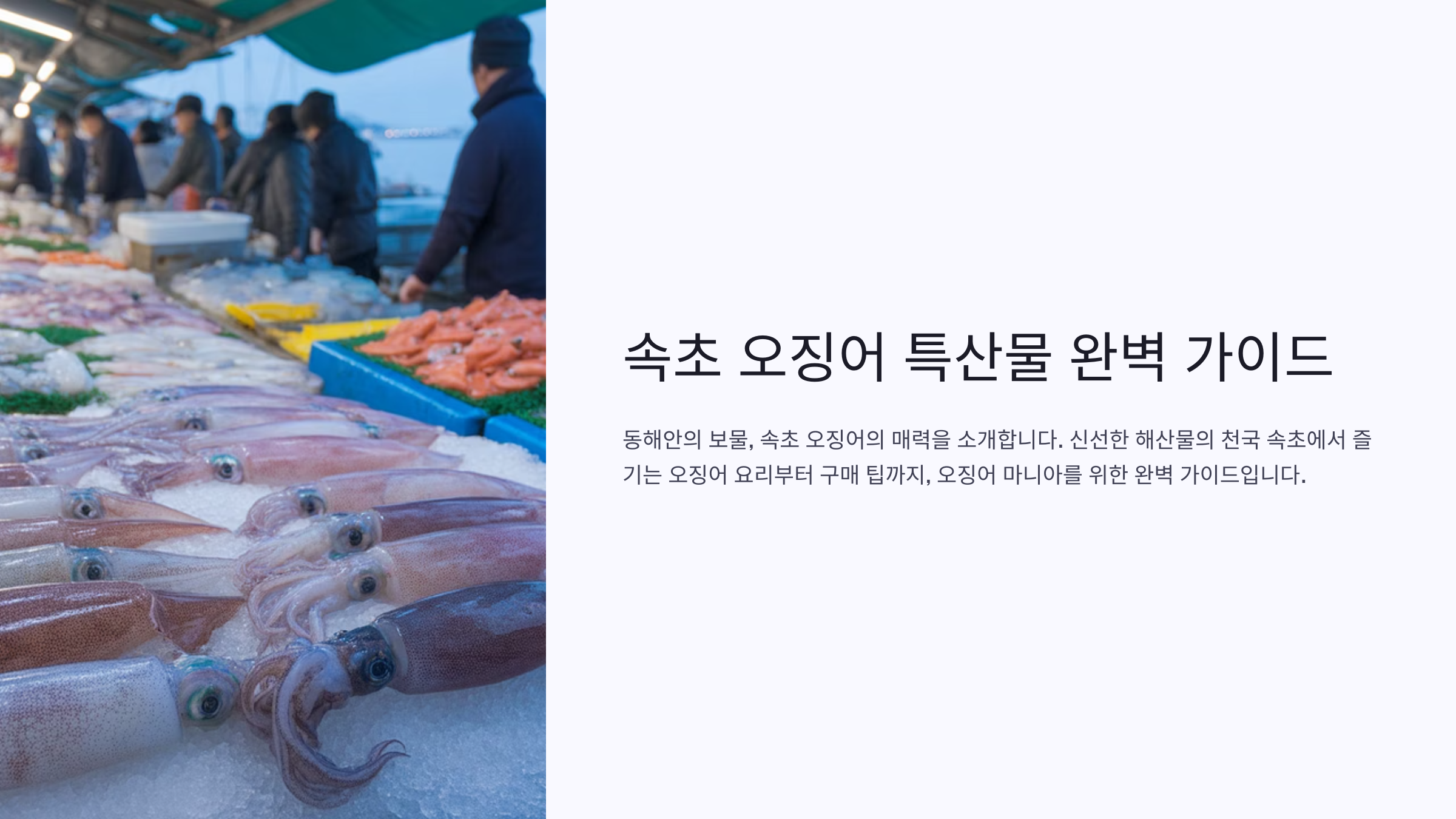 속초 오징어가 특별한 이유는 명확합니다. 동해안의 깨끗하고 차가운 바다가 선물하는 독보적인 신선함과 맛, 그 비밀을 알아보세요.