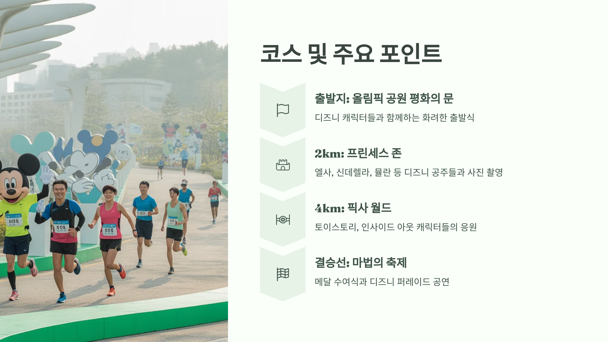 이 행사는 단순한 달리기를 넘어서 디즈니의 마법과 즐거움을 느낄 수 있는 환상적인 체험이에요. 가족 단위, 친구 그룹 누구나 쉽게 참여할 수 있어요.