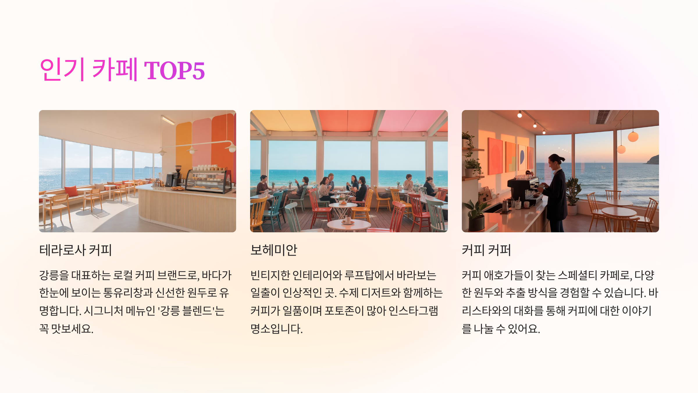 ☕ 인기 카페 TOP5
