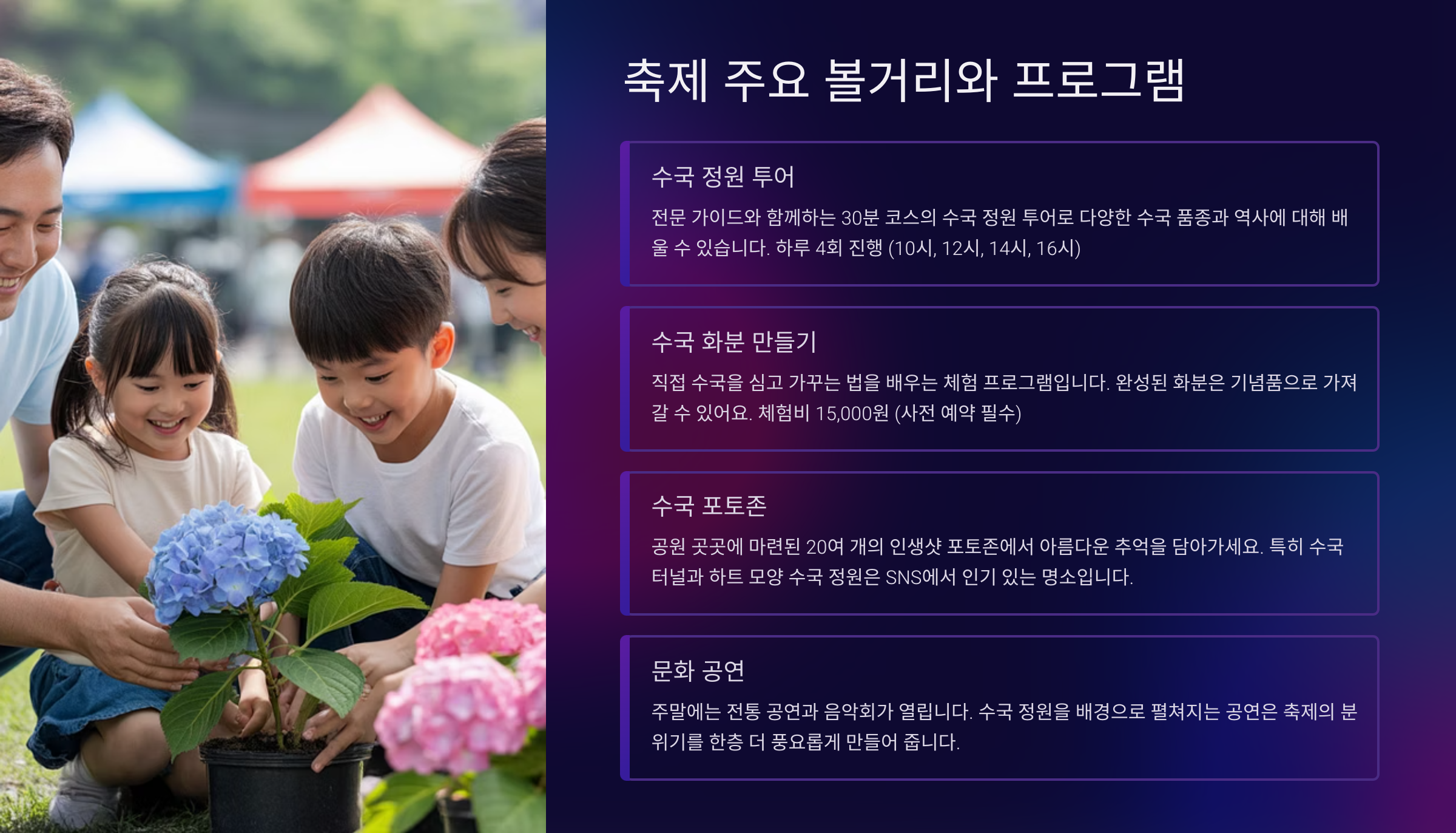 🍃 휴애리 수국축제 주요 일정