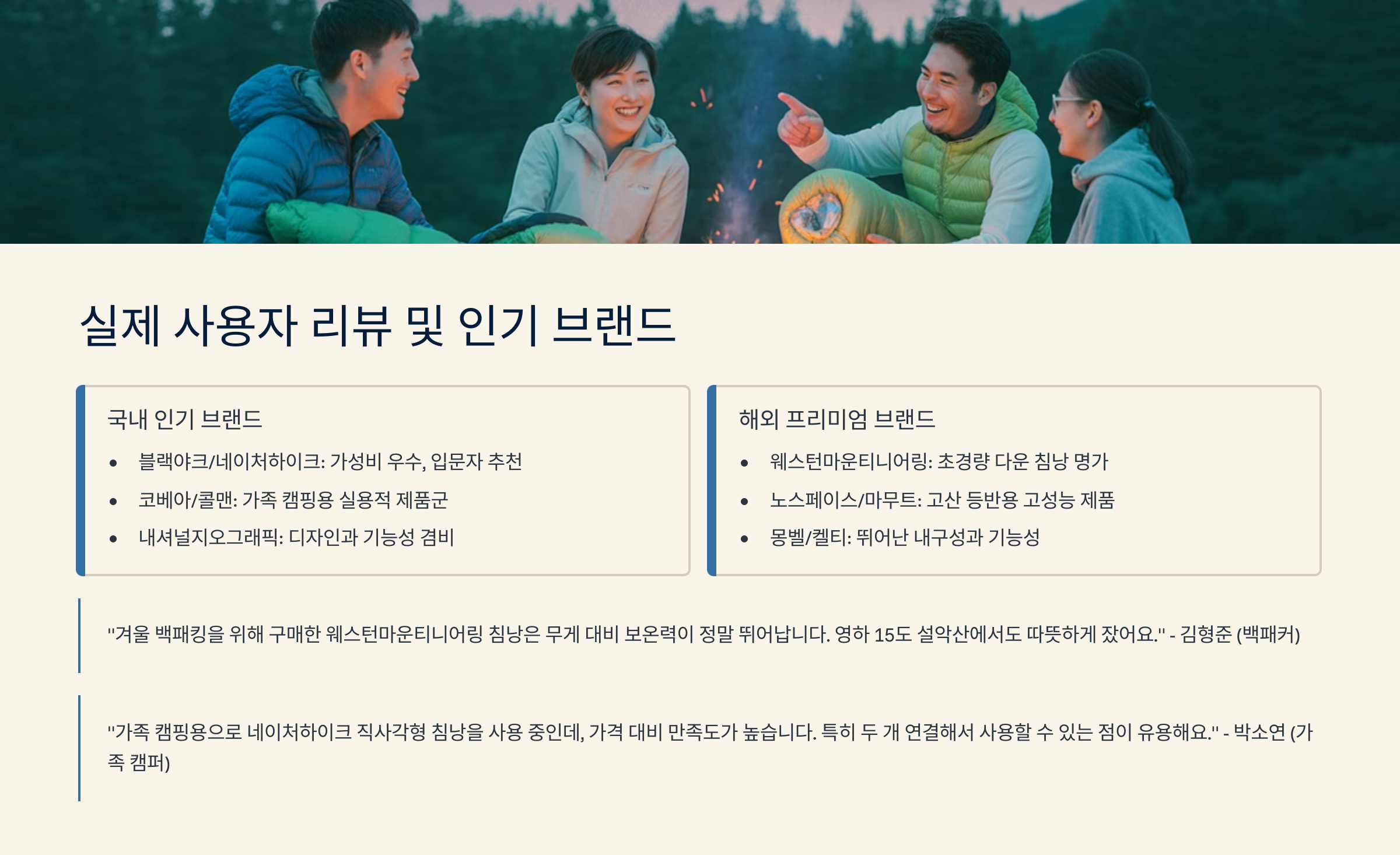 🌟 인기 캠핑 침낭 브랜드 비교표