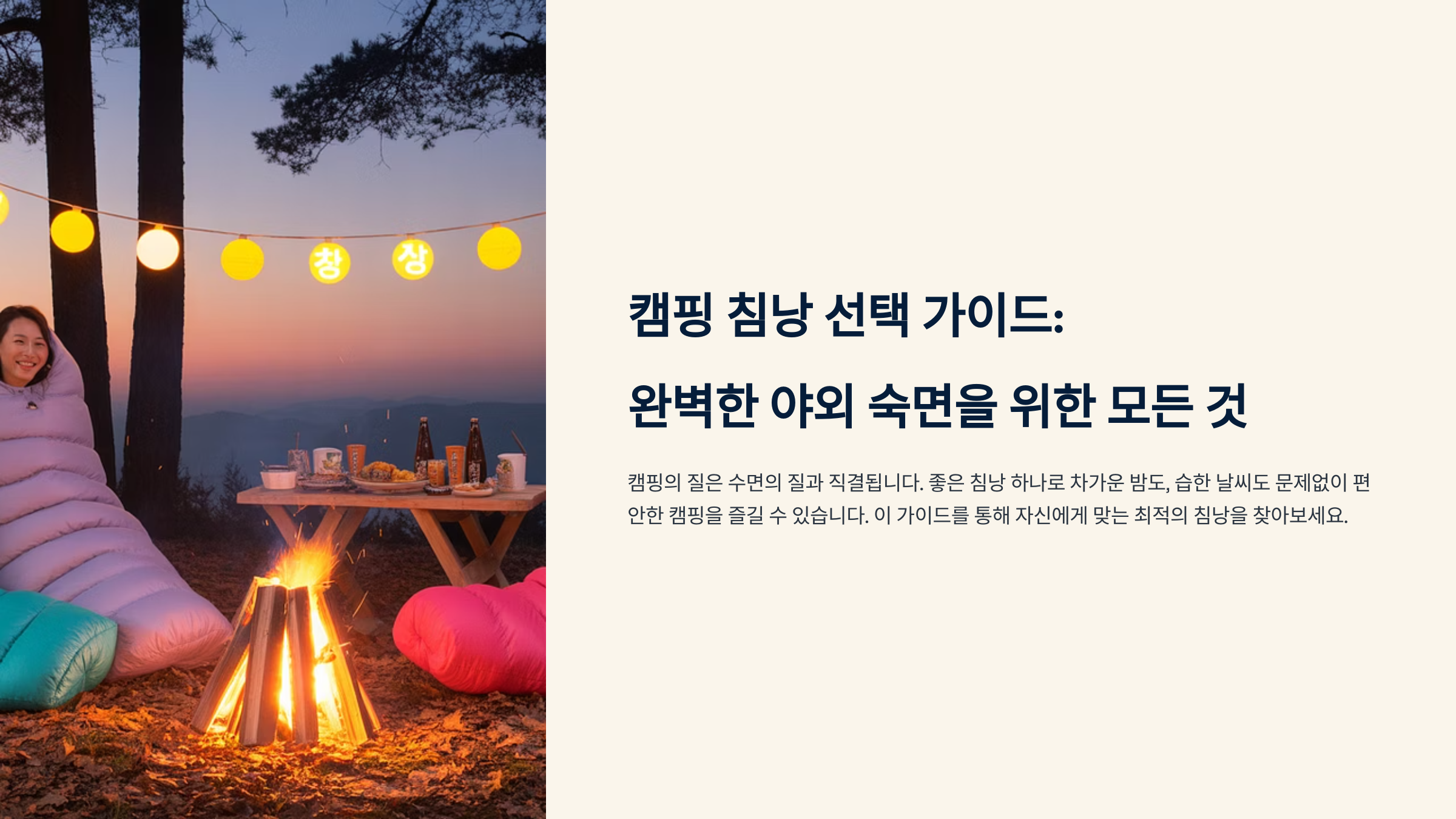 캠핑의 재미를 완성하는 요소 중 하나가 바로 편안한 잠자리예요. 특히 침낭 선택은 밤새 꿀잠을 자는 데 필수적이죠. 다양한 종류와 용도, 계절에 맞는 침낭 고르기는 처음 캠핑하는 사람에게 어려울 수 있어요.