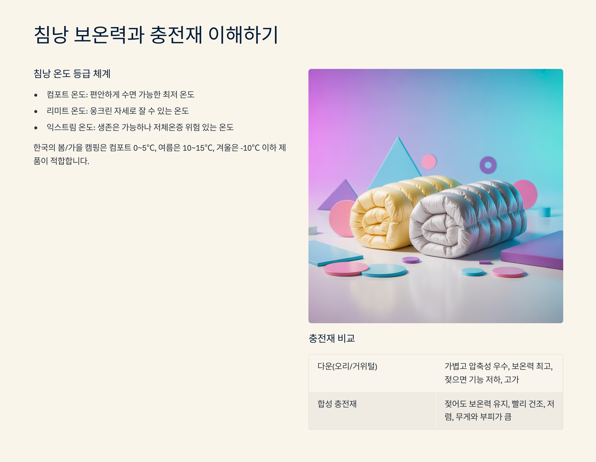 침낭 보온력과 충전재 이해하기 ❄️
