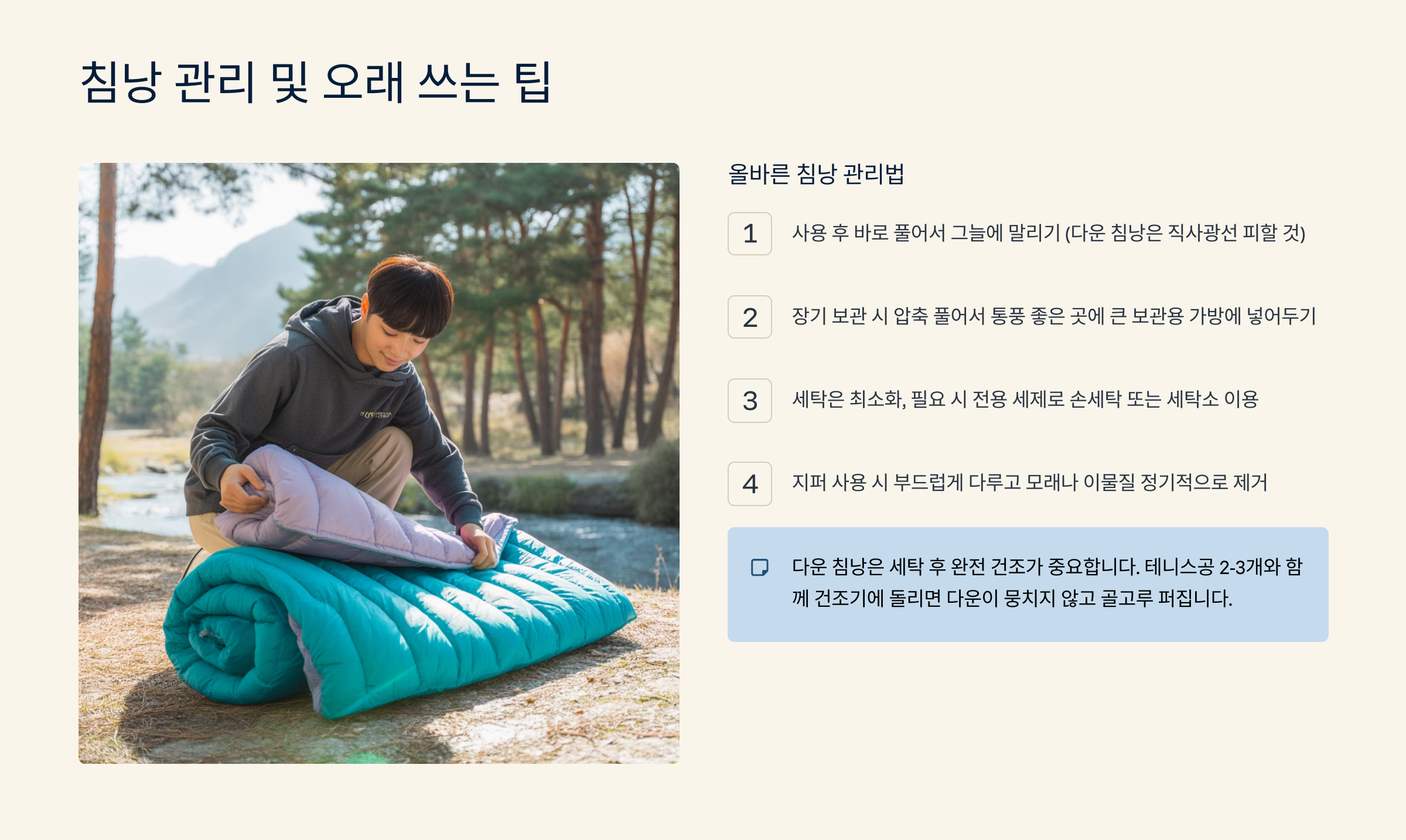 침낭 관리 및 오래 쓰는 팁 🧼