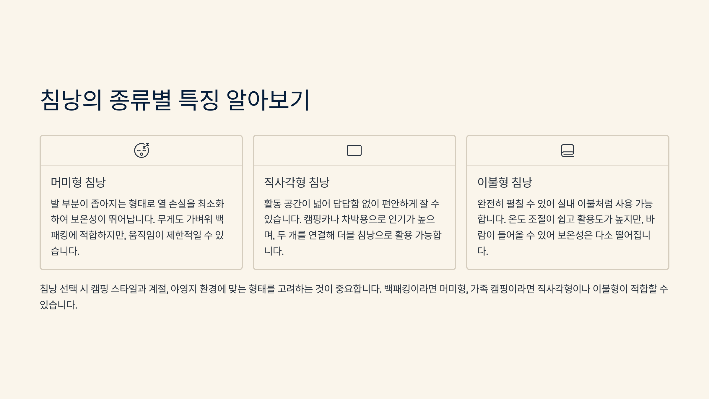 🛏️ 침낭 종류별 특징 비교표