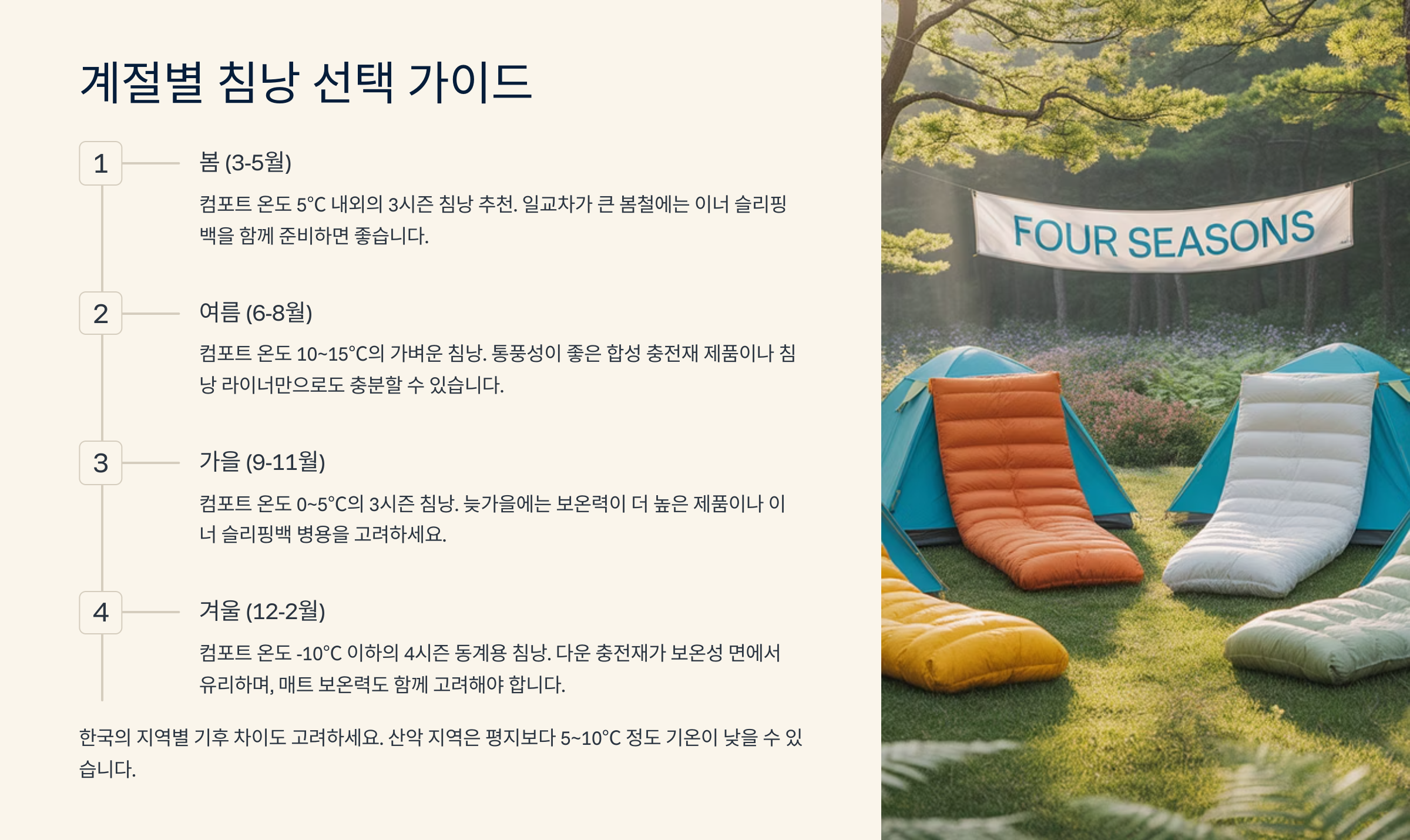 🌦️ 계절별 추천 침낭 요약표