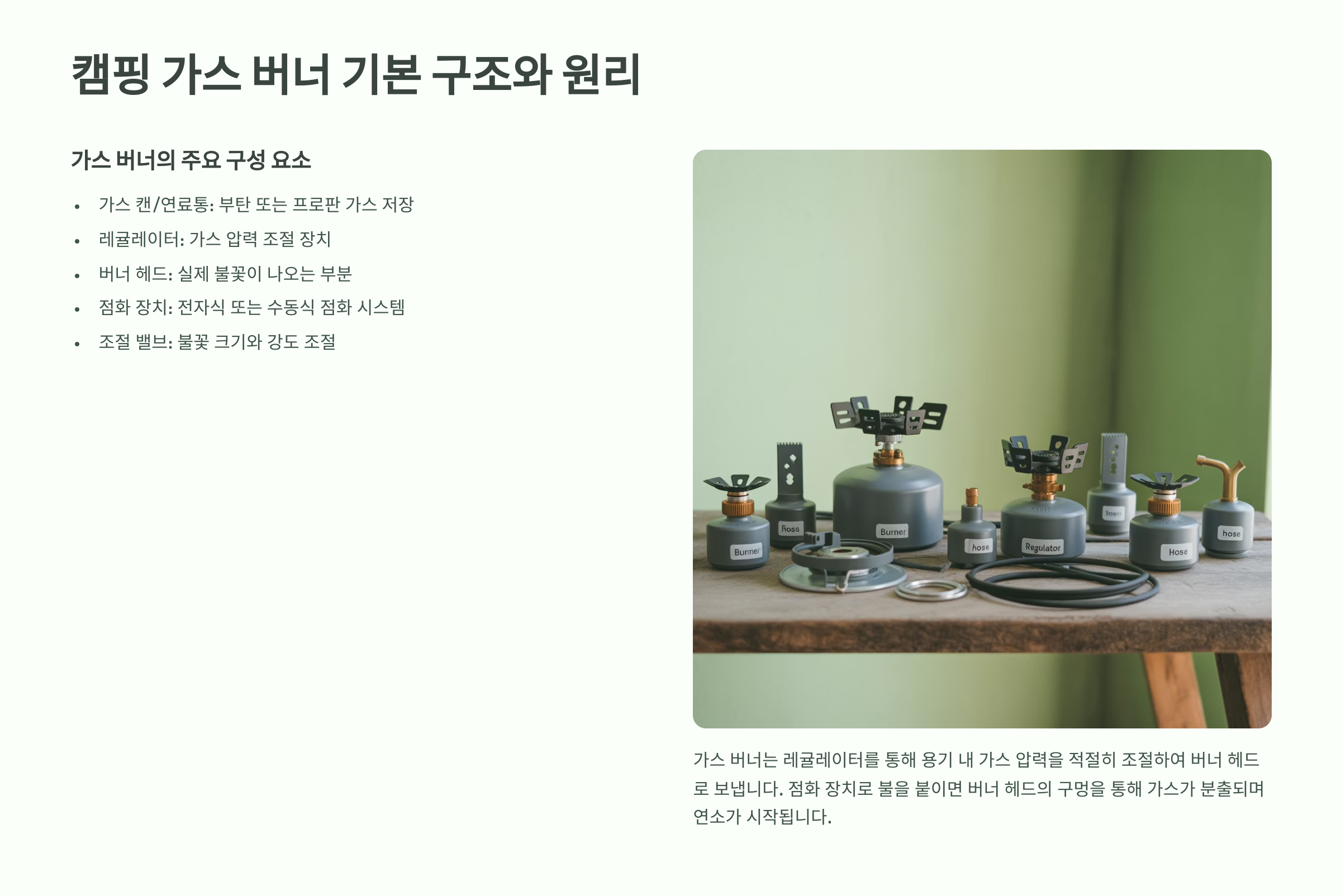 가스 버너의 구조를 제대로 알면 사용 시 이상 신호를 빠르게 파악할 수 있어서 안전한 캠핑에 큰 도움이 돼요.