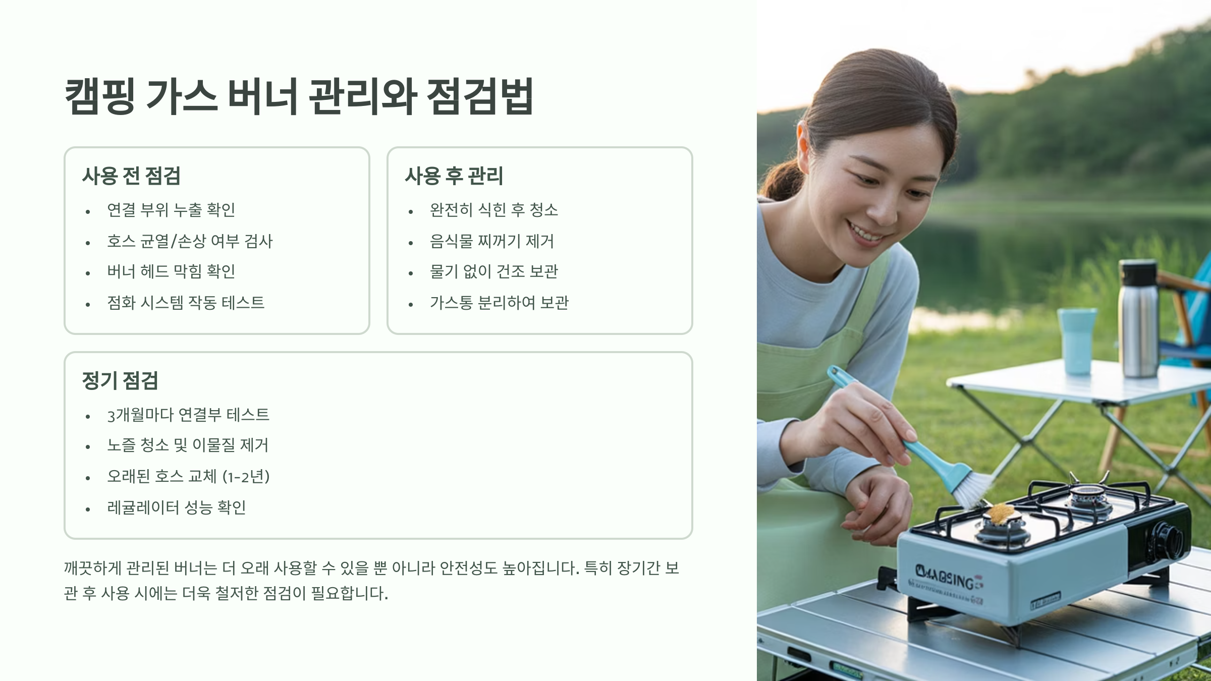 정기적인 청소와 점검이 사고 예방의 첫걸음이니까, 캠핑 전후 꼭 챙겨야 할 습관이에요.