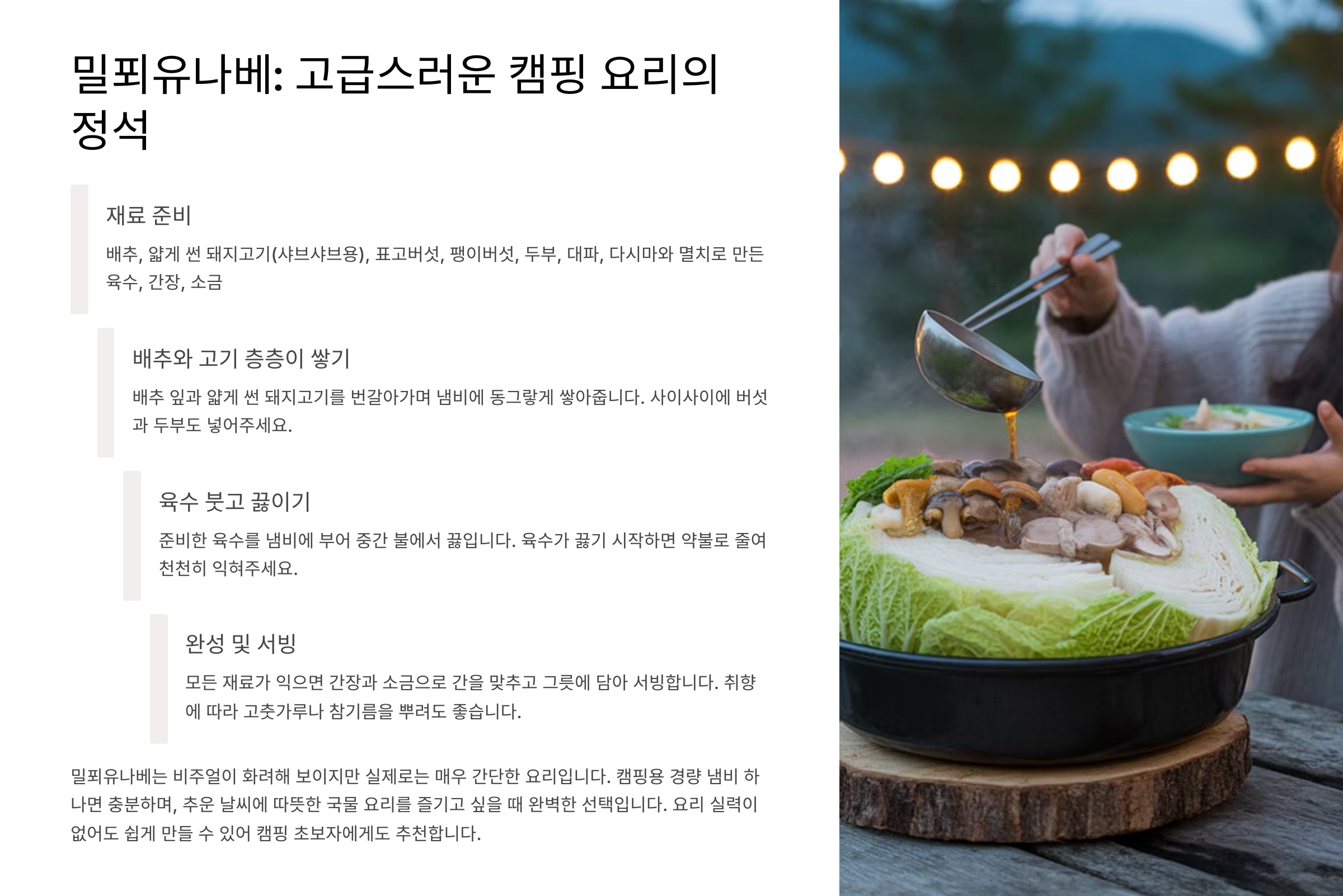 3. 밀푀유나베: 고급스러운 캠핑 요리의 정석