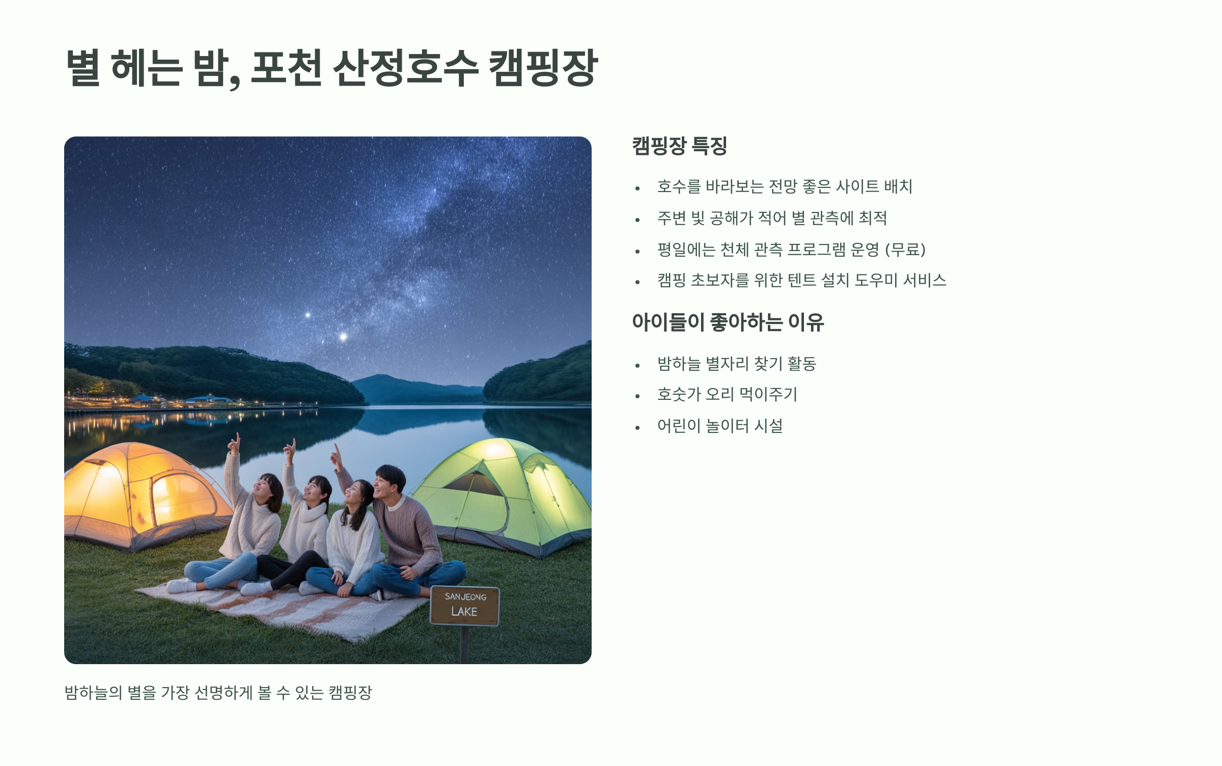 환상적인 별이 쏟아지는 밤, 산정호수에서 특별한 캠핑을!