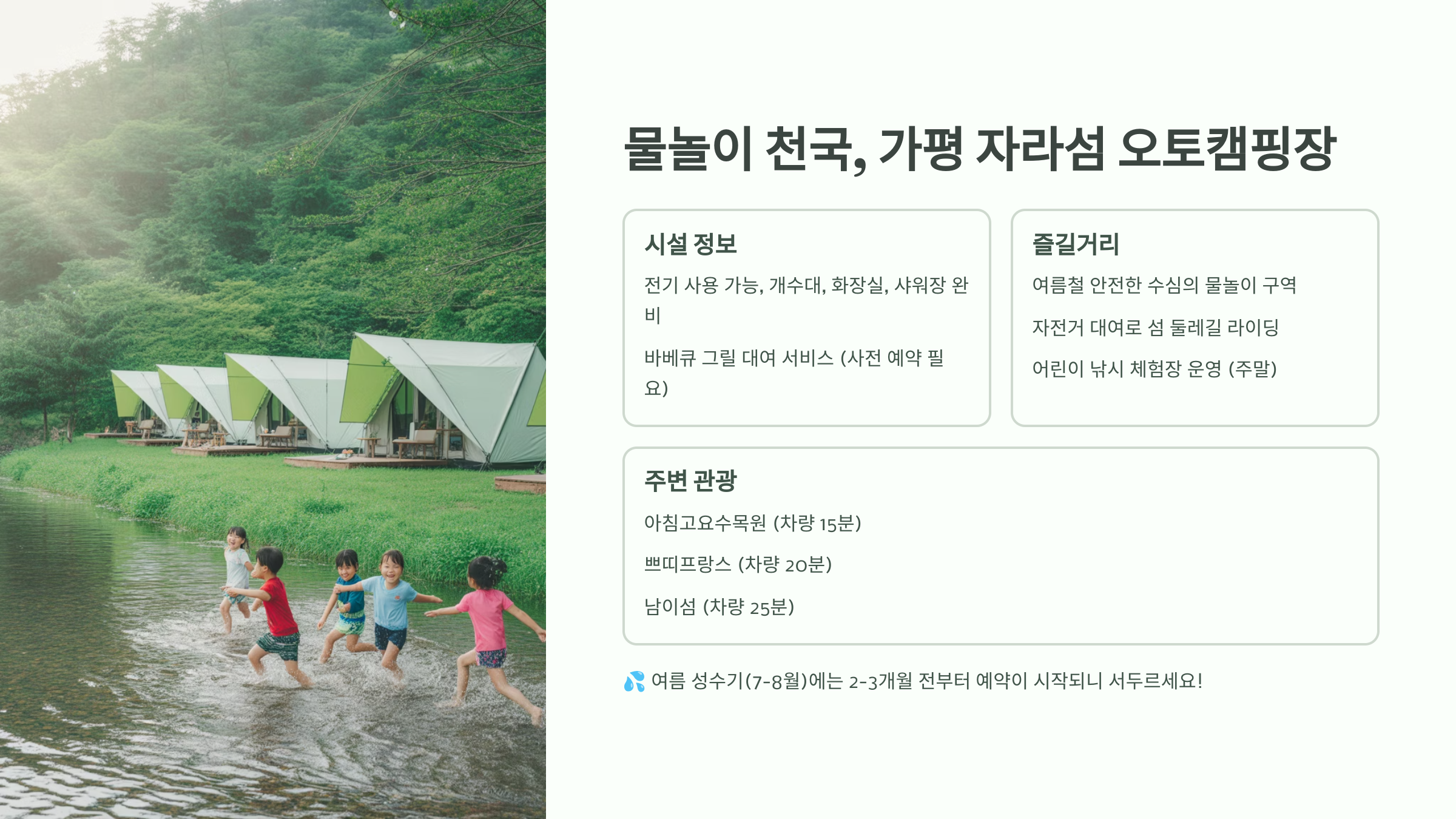 자라섬에서 아이들과 신나는 물놀이 캠핑을 경험해보세요!