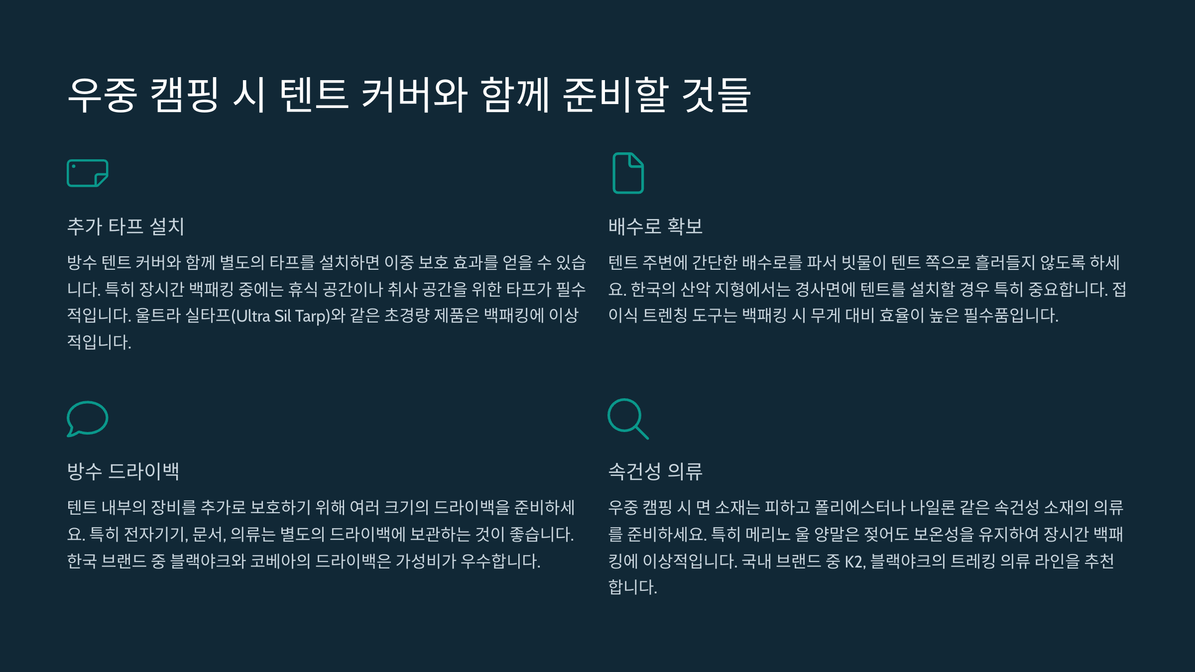 | 방수 텐트 커버의 중요성 | 상세 설명 |