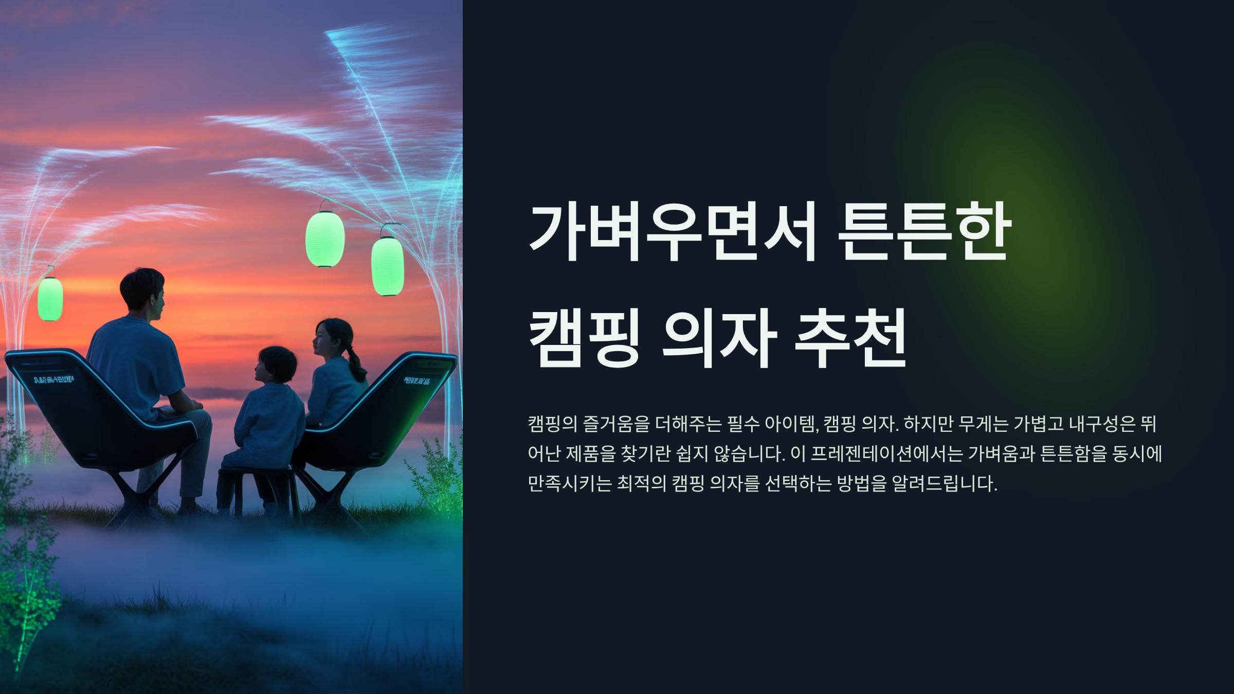 이 글은 여러분의 이러한 고민을 해결해 드리기 위해 **'가벼우면서 튼튼한 캠핑 의자'**를 주제로 사용자 중심의 정보를 제공합니다. 캠핑 의자를 선택할 때 고려해야 할 핵심 요소들부터 다양한 소재의 장단점, 인기 있는 의자 유형별 특징, 그리고 실제 구매 시 도움이 될 만한 추천 제품들까지 심층적으로 다룰 예정입니다. 이 가이드를 통해 여러분의 캠핑 라이프를 한층 더 업그레이드할 완벽한 캠핑 의자를 찾으시길 바랍니다.