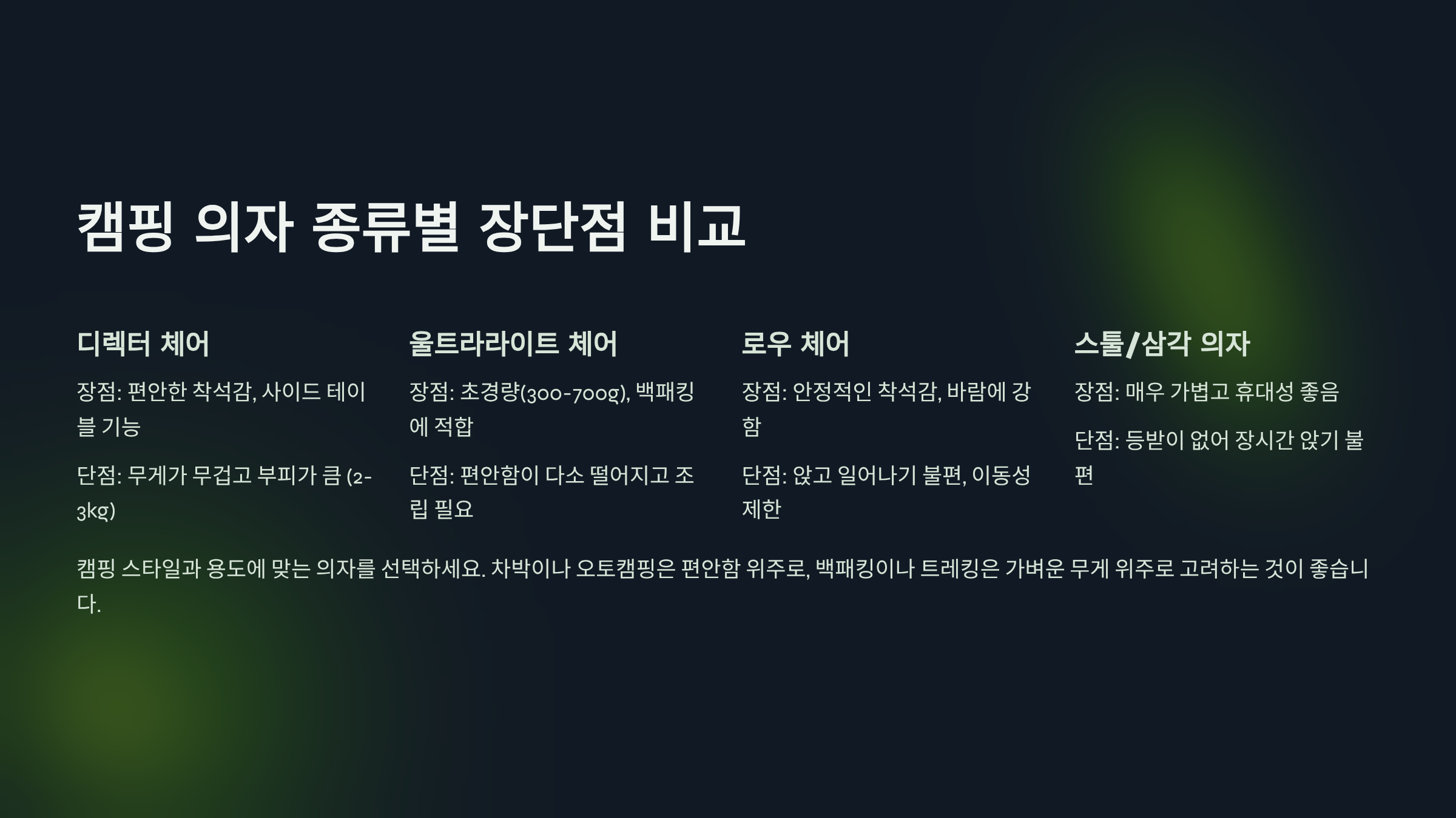 캠핑 의자 종류별 장단점 비교