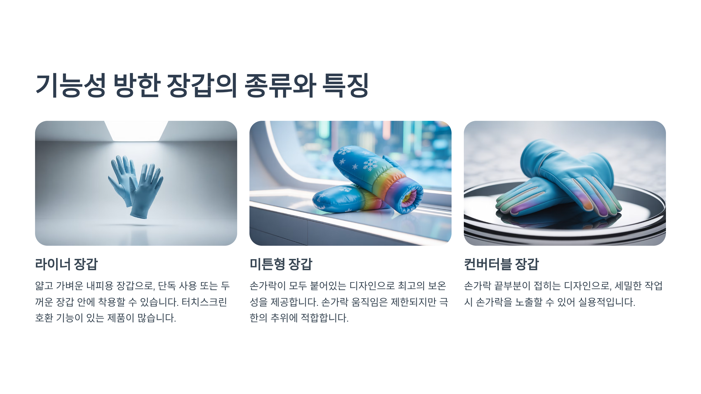 기능성 방한 장갑의 종류와 특징