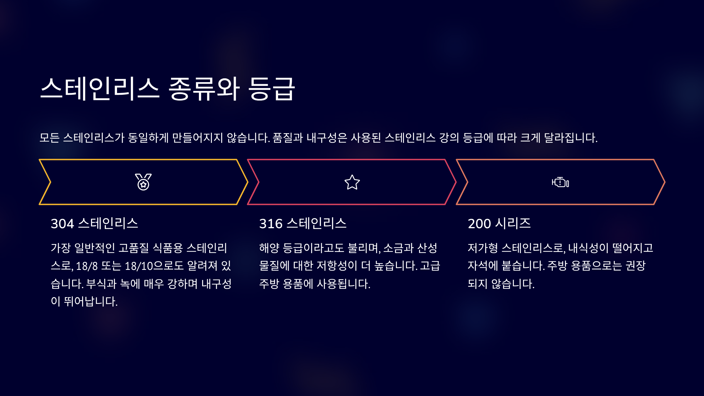 ---스테인리스 종류와 등급: 304와 27종의 차이