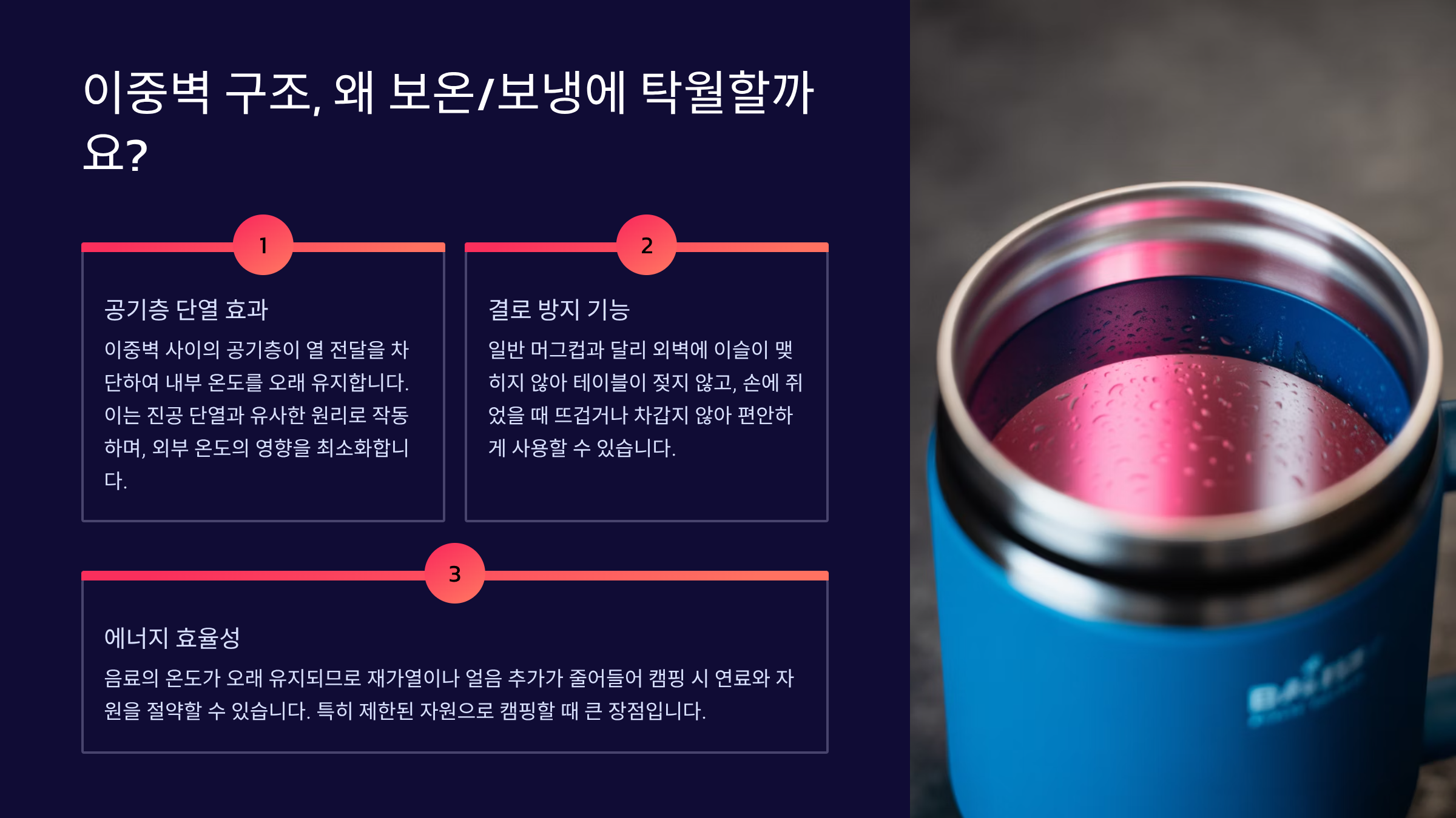 Q1. 이중벽 머그컵은 왜 보온/보냉이 잘 되나요?