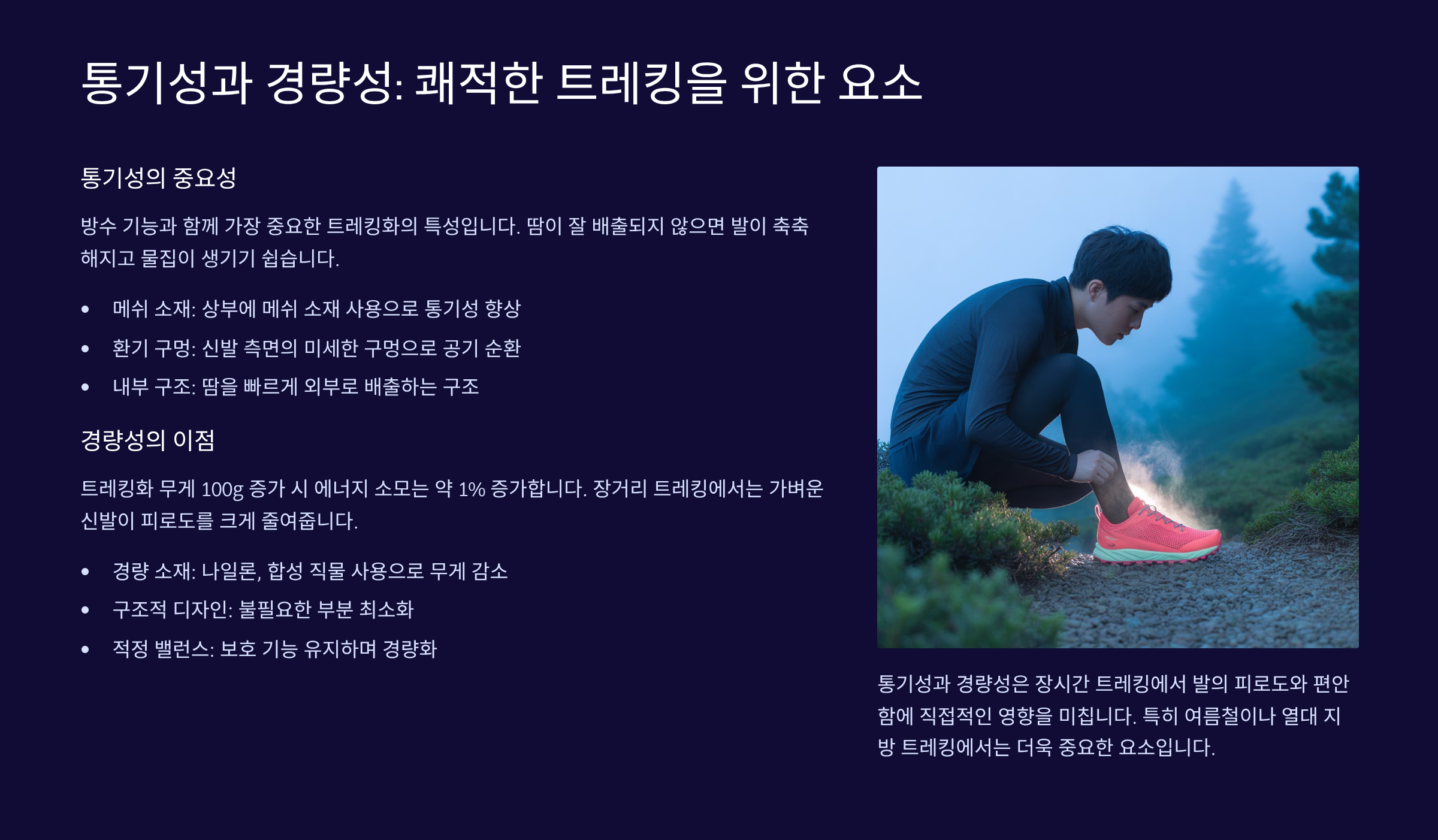 통기성과 경량성: 쾌적한 트레킹을 위한 요소