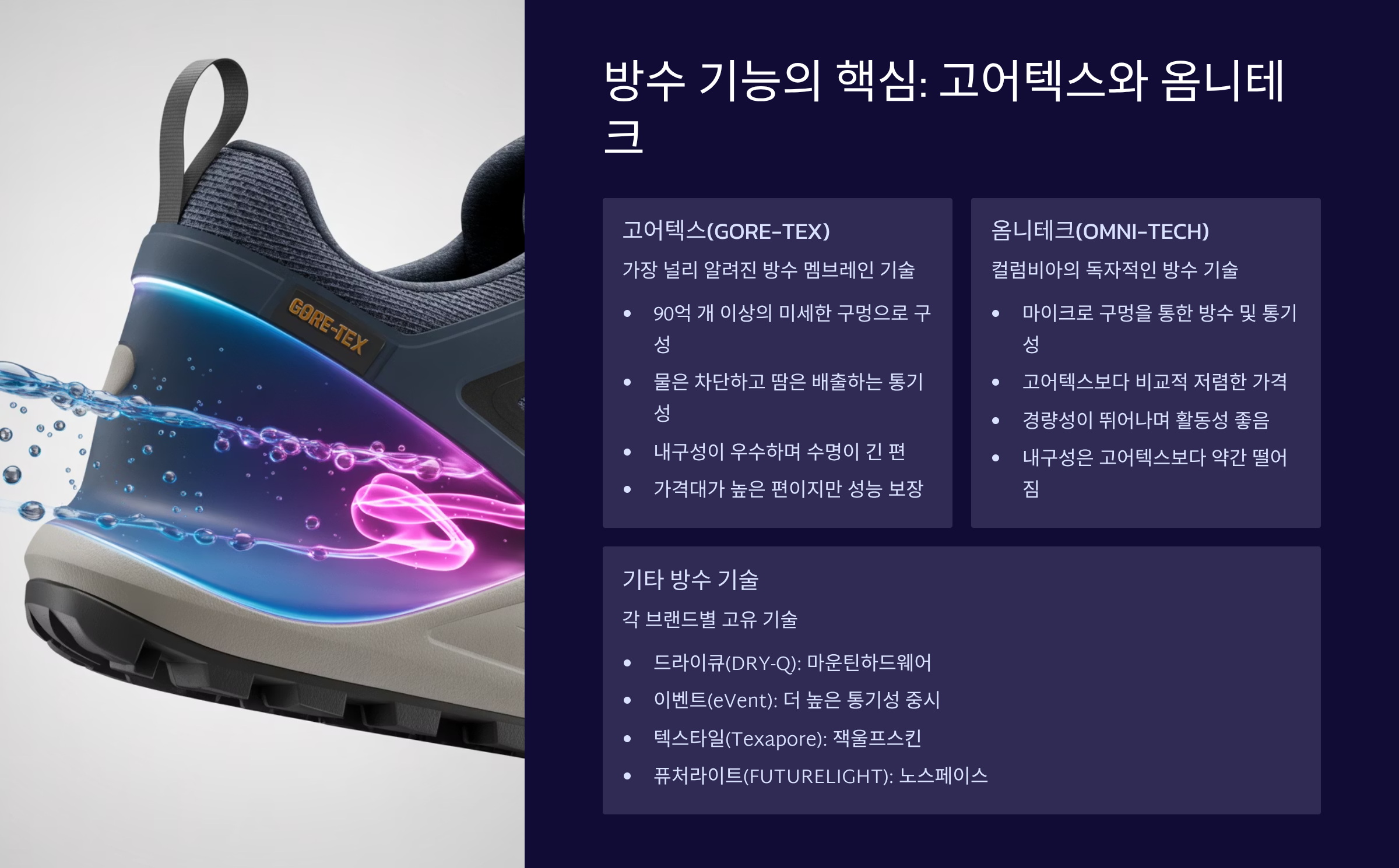 방수 기능의 핵심: 고어텍스와 옴니테크