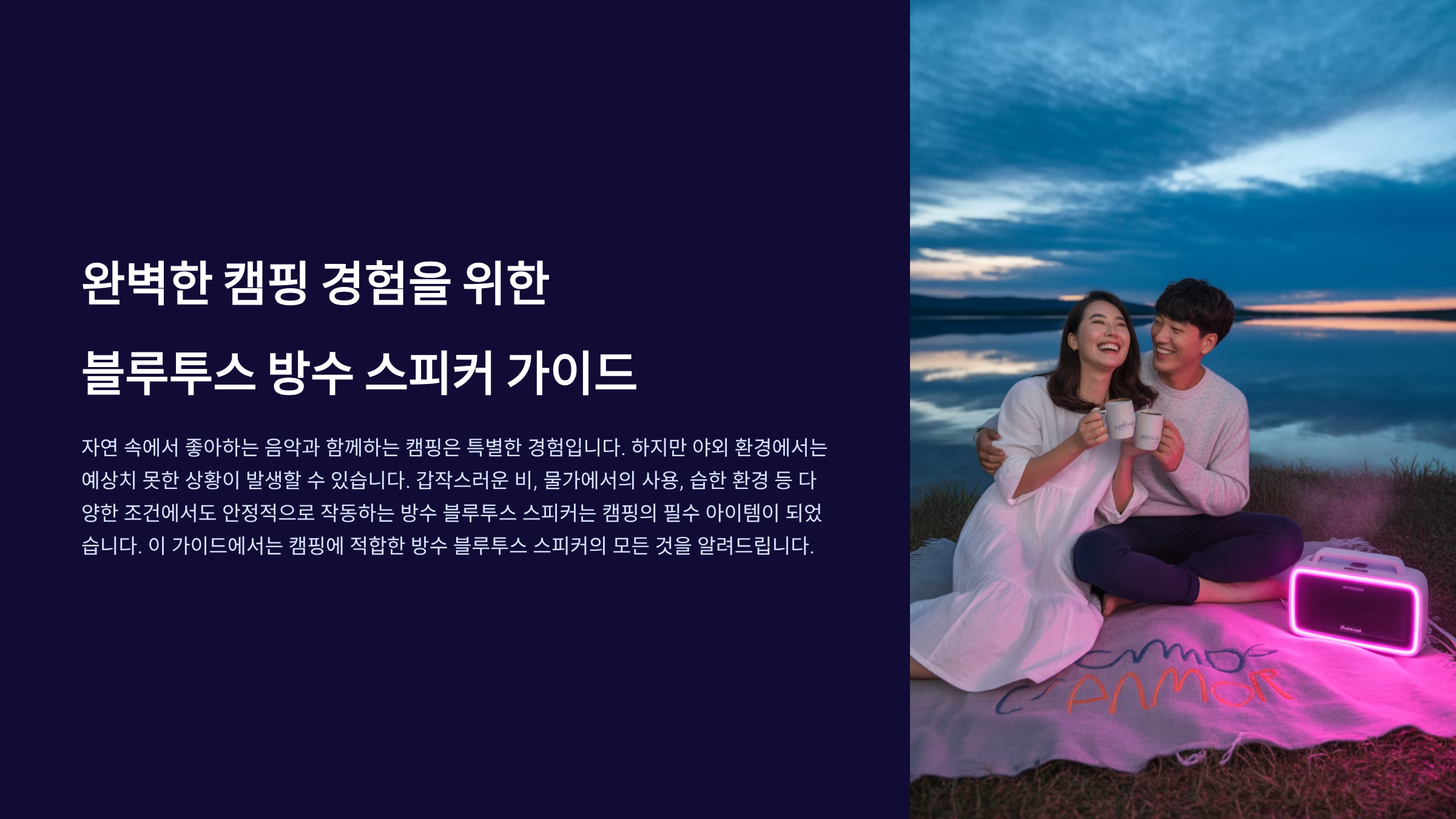 푸른 숲 속, 시원한 계곡 옆, 밤하늘의 별 아래에서 듣는 음악은 일상에서는 경험하기 힘든 특별한 감동을 선사합니다. 캠핑이나 야외 활동의 즐거움을 배가시키기 위해 **휴대용 블루투스 스피커**는 이제 필수품이 되었습니다. 하지만 야외는 예기치 않은 비나 물놀이, 먼지 등으로 인해 전자기기가 손상되기 쉽습니다. 이러한 상황에 대비하여 **방수 기능과 내구성**을 갖춘 스피커를 선택하는 것이 매우 중요합니다.