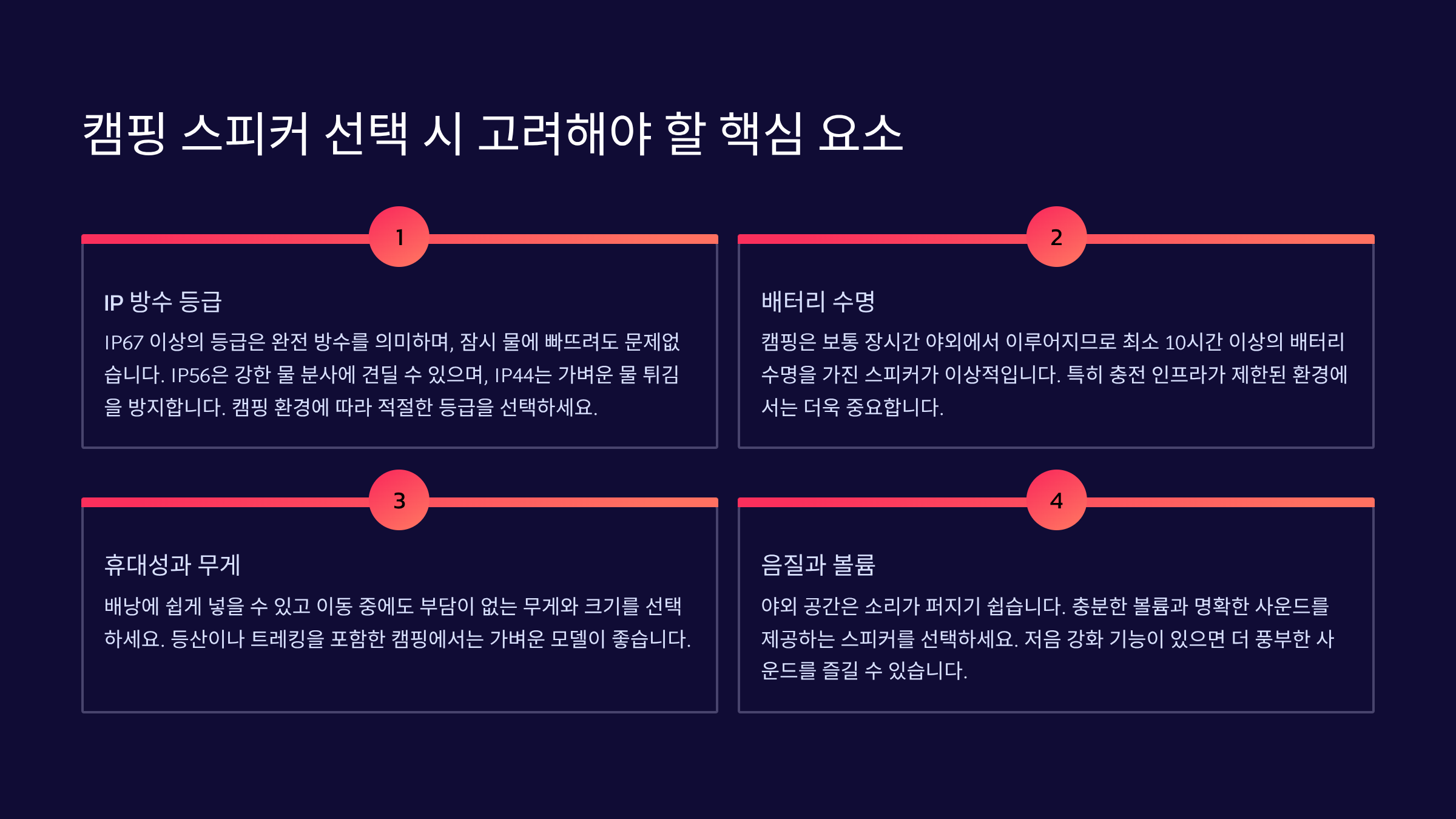 캠핑 스피커 선택 시 고려해야 할 핵심 요소