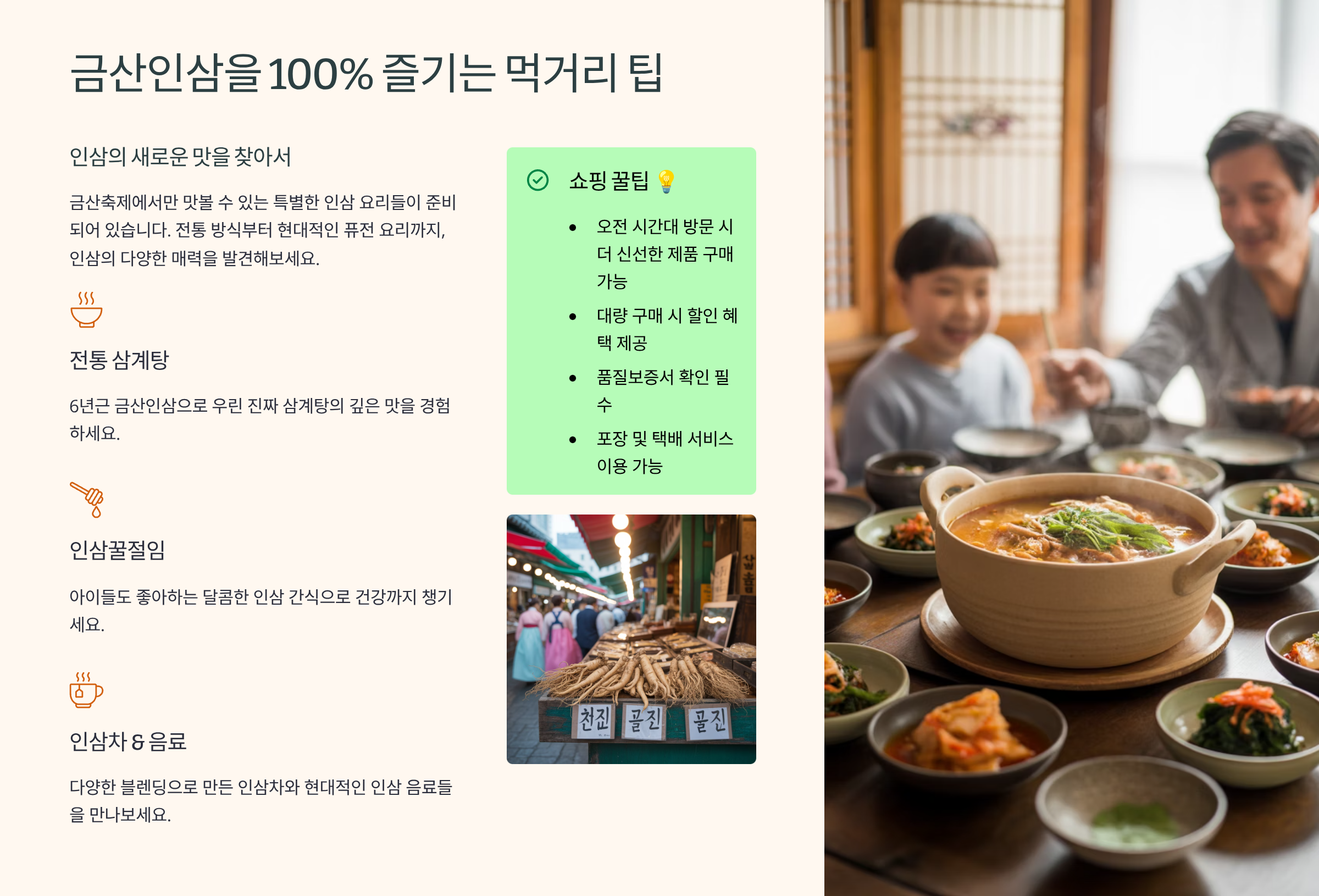 금산인삼을 100% 즐기는 먹거리 & 쇼핑 팁: 인삼의 새로운 맛을 찾아서 😋