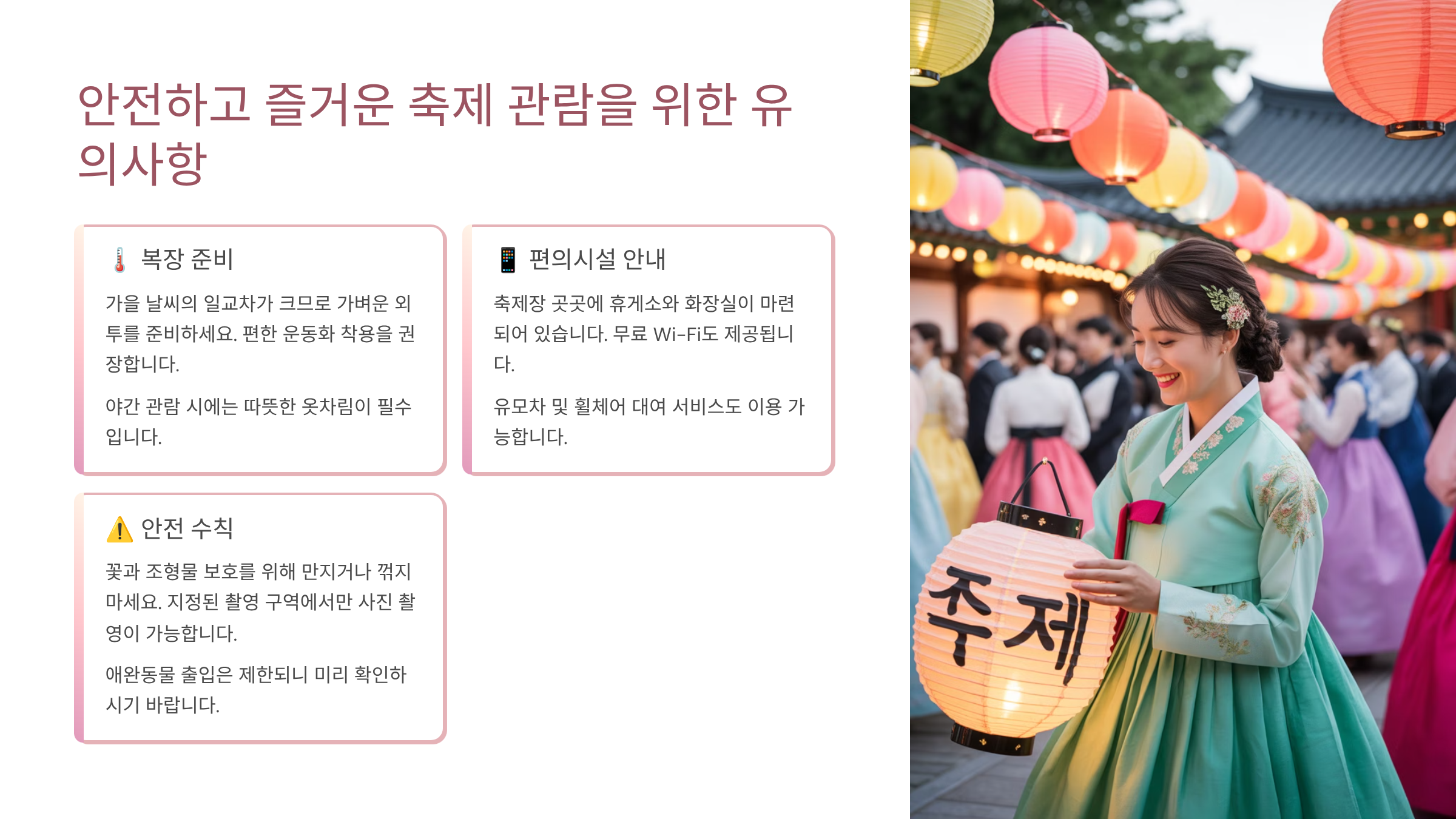 안전하고 즐거운 축제 관람을 위한 유의사항 📝