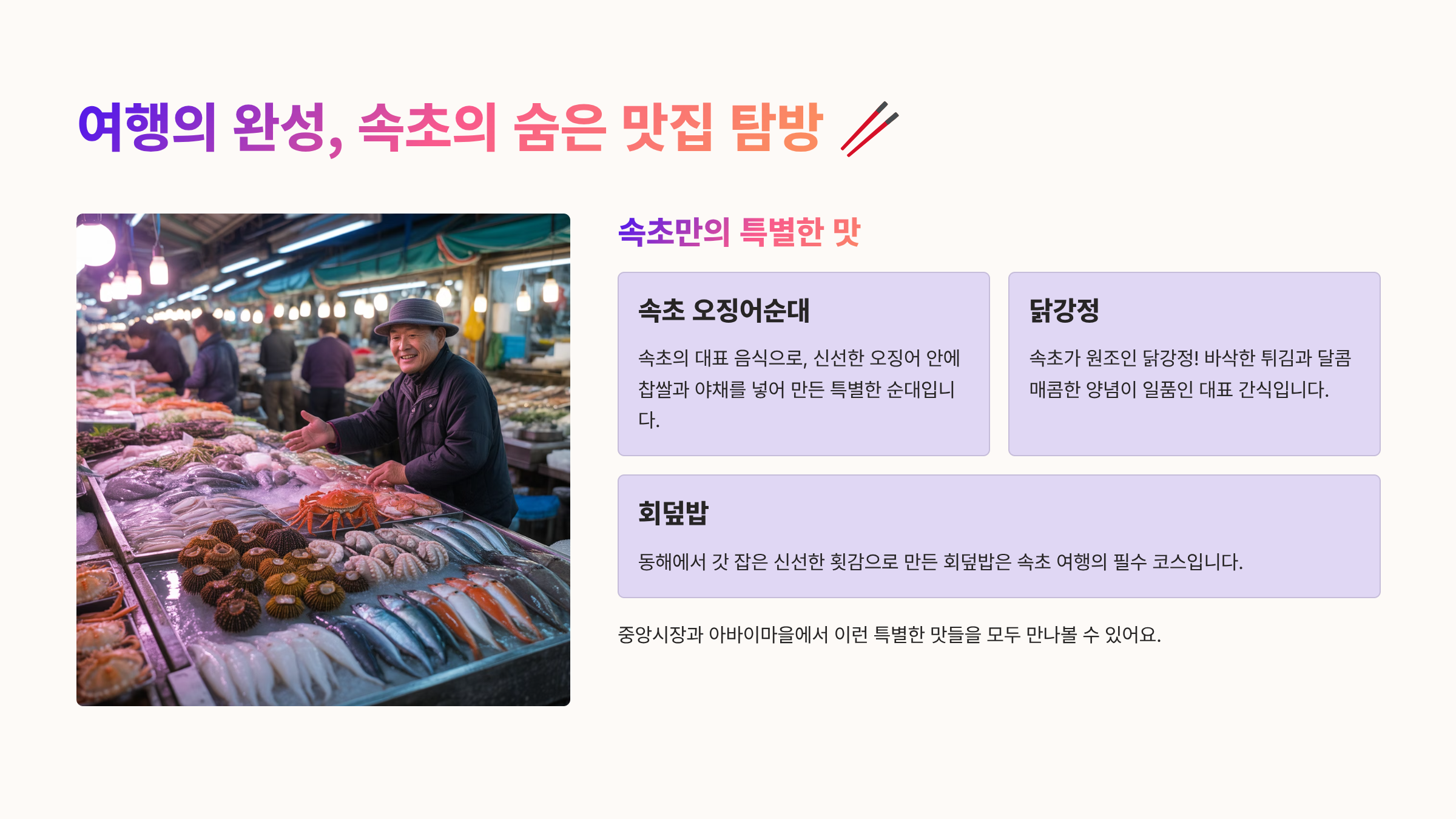 여행의 완성, 속초의 숨은 맛집 탐방 🥢