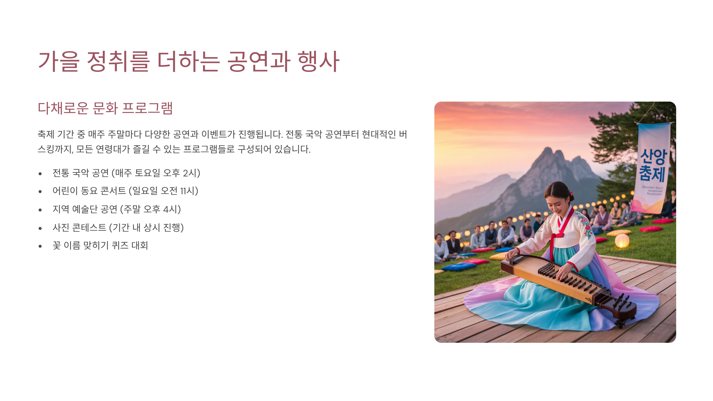가을의 정취를 더하는 다채로운 공연과 행사 🎶