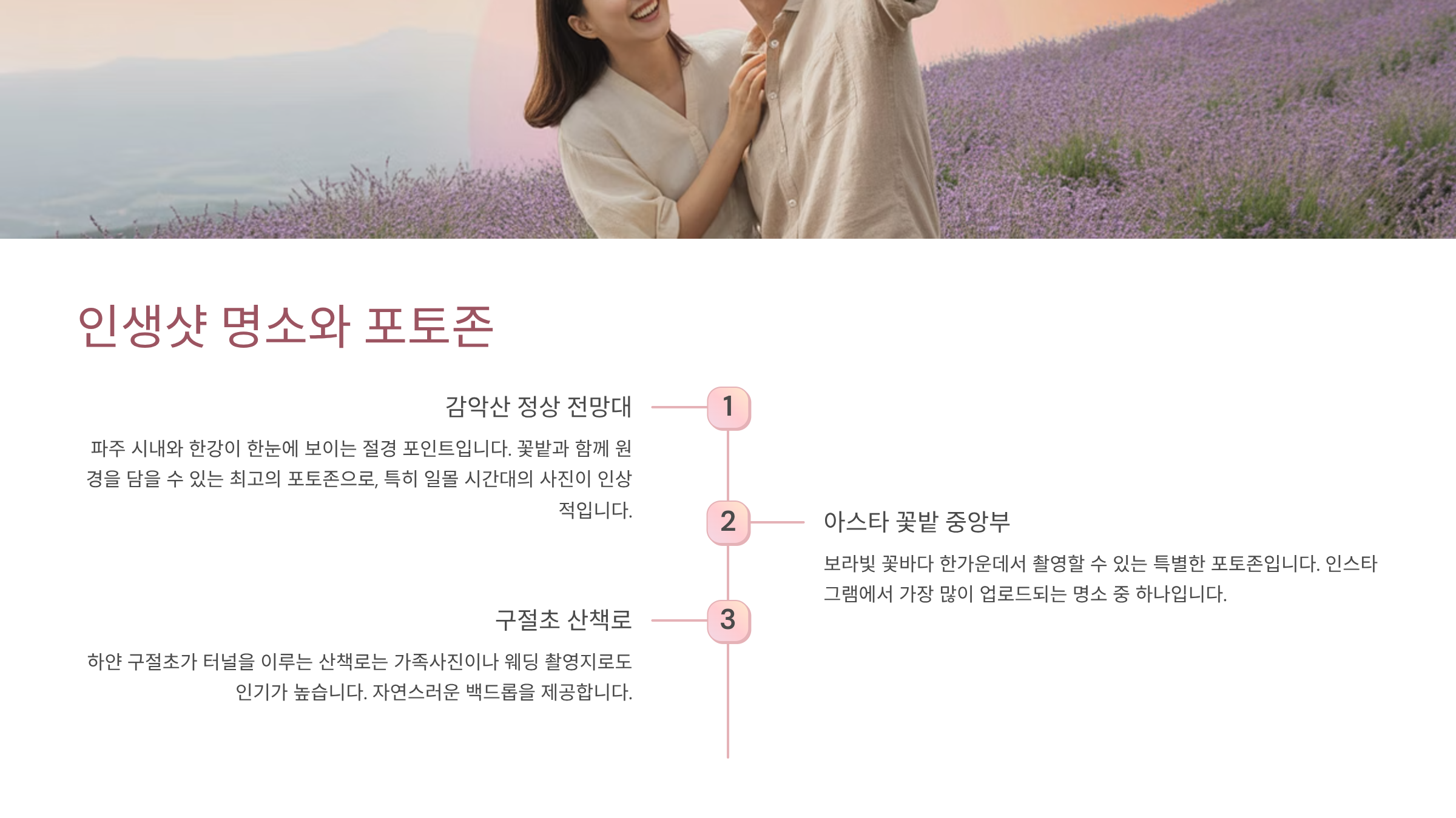 각 포토존별 최적의 사진을 찍기 위해서는 빛의 방향을 고려해 보세요. 특히 노을이 지는 저녁 시간이 가장 아름답습니다.
