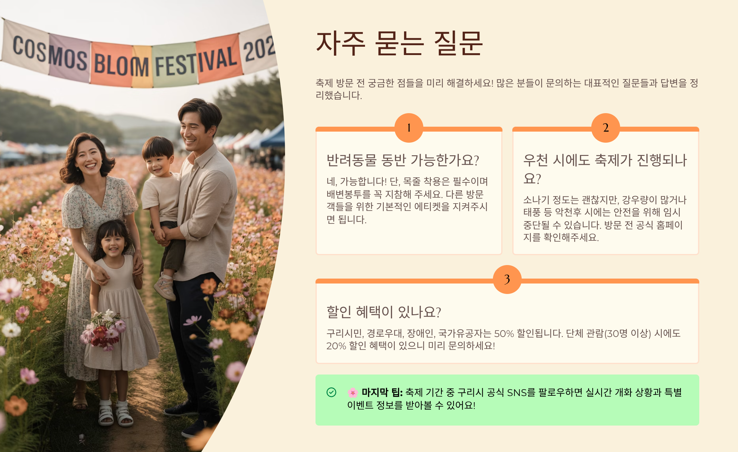 6. 구리 코스모스 축제, 더욱 알차게 즐기는 팁 ✅