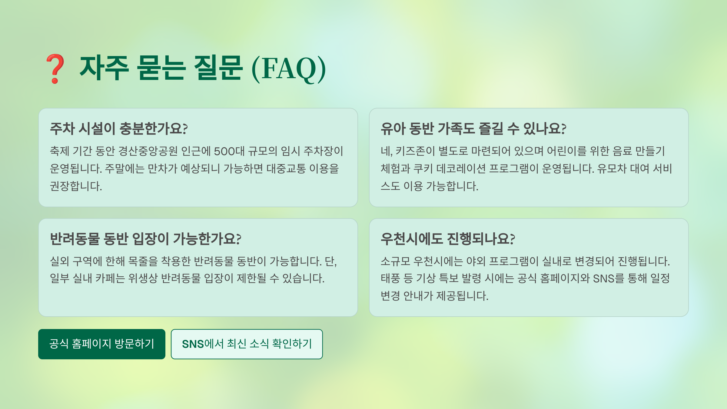 이제 자주 묻는 질문들을 확인하며 궁금증을 해결해봐요!