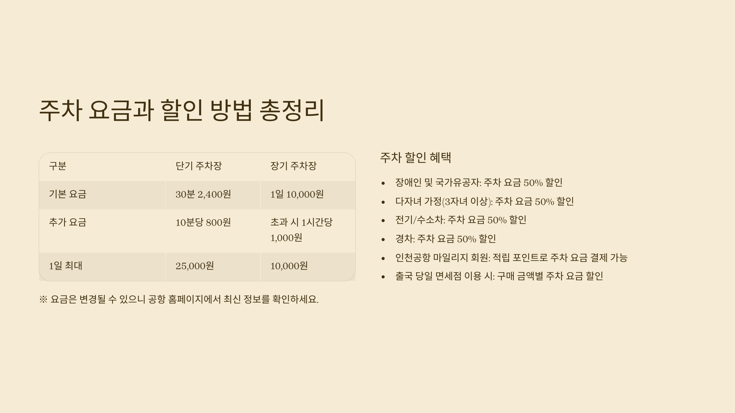 💰 인천공항 주차 요금 표