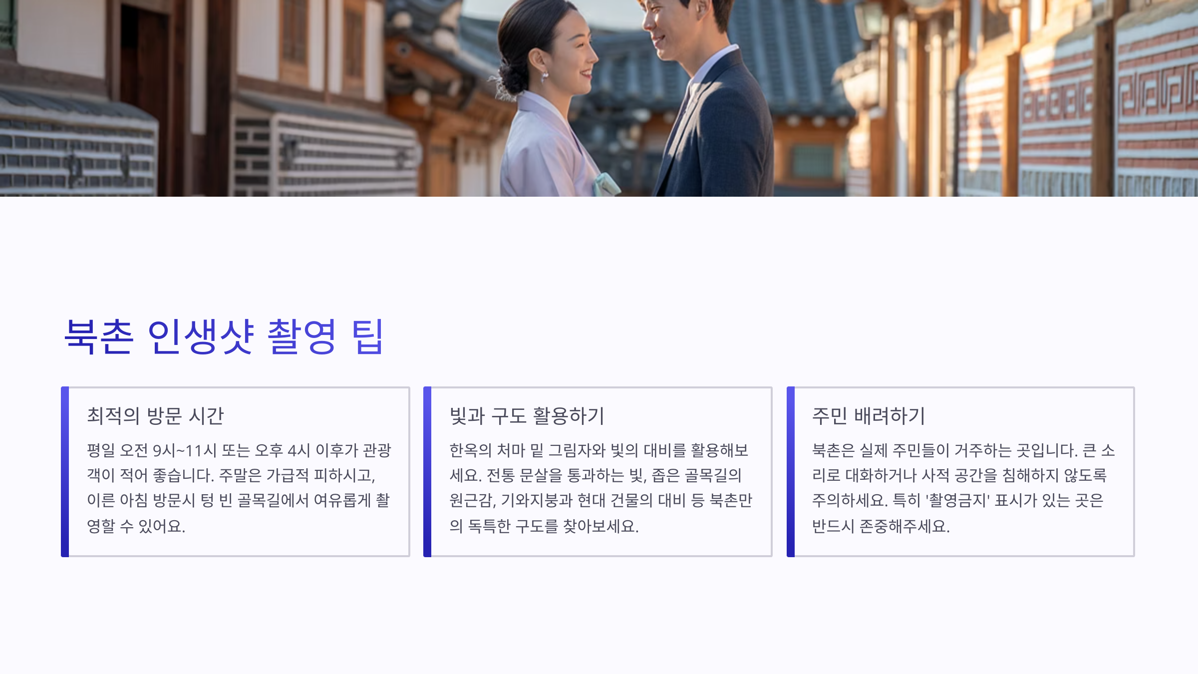 앞으로 이어질 본문 섹션들은 각기 7개 문단으로 자세히 설명할 거니까 편하게 읽으며 궁금한 점은 FAQ에서 꼭 확인해봐 주세요. 지금부터 북촌 한옥마을 여행의 매력을 깊이 있게 파헤쳐 볼게요!