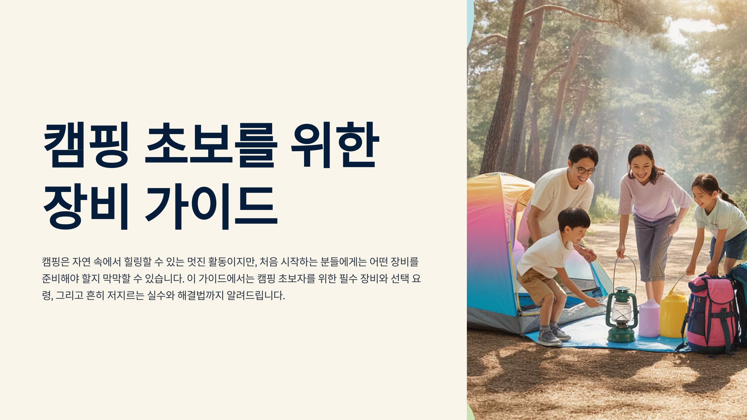 마지막으로 초보자가 흔히 하는 실수와 이를 예방하는 방법, 장비 관리와 보관법까지 포함해 캠핑 장비 선택과 사용에 자신감을 가질 수 있도록 도울 거예요. 캠핑이 더 즐거워지는 첫걸음, 함께 해 봐요!