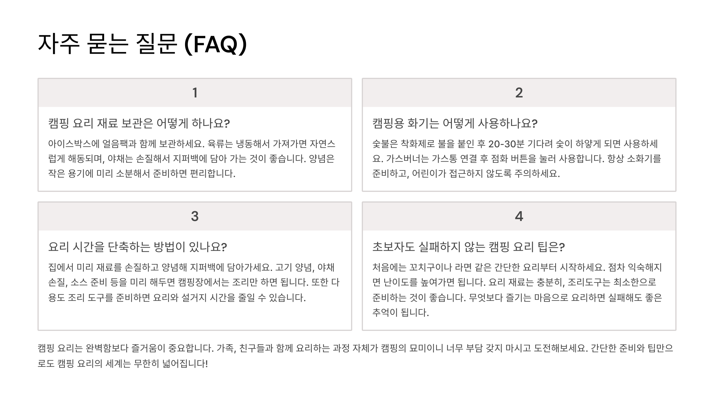 1. 인트로: 캠핑 요리, 어렵지 않아요!