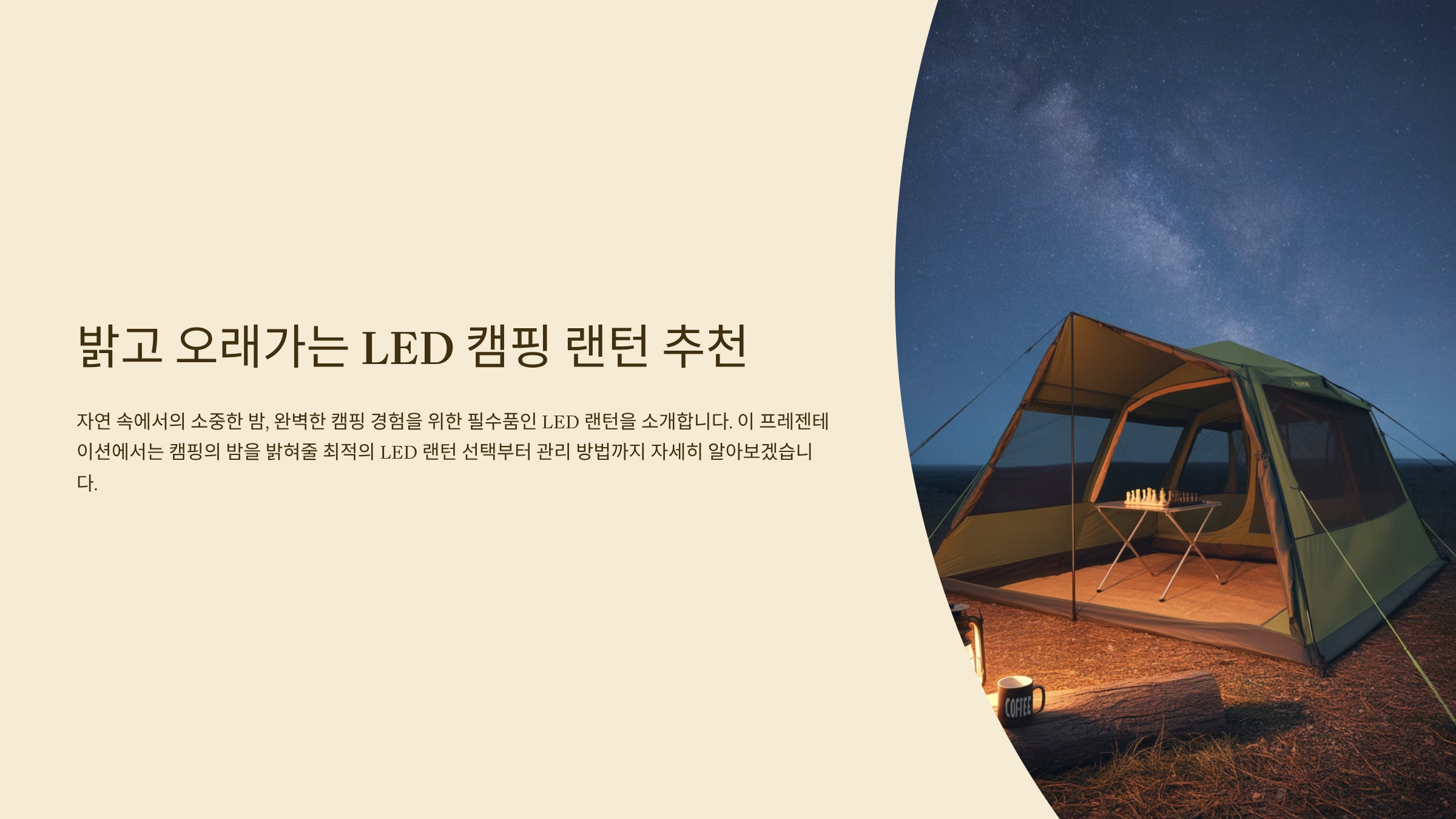 이 글은 캠핑 초보부터 베테랑까지, 모든 캠퍼들이 후회 없는 LED 캠핑 랜턴을 선택할 수 있도록 **사용자 중심**의 정보를 제공합니다. **EEAT(경험, 전문성, 권위, 신뢰)** 원칙에 기반하여 LED 랜턴의 핵심 요소들을 심층 분석하고, 여러분의 캠핑 스타일과 필요에 맞는 최적의 랜턴을 고르는 데 필요한 모든 꿀팁을 제시할 것입니다. 이제 밤의 캠핑을 더욱 빛내줄 최고의 LED 캠핑 랜턴을 찾아 떠나볼까요?